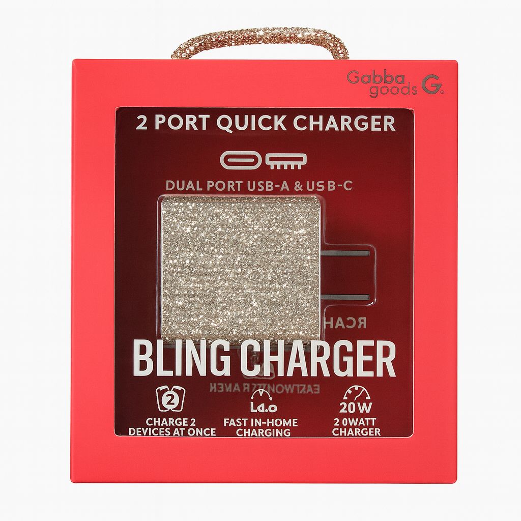 BLING 20 WATT 2 PORT QUICK CHARGER USB-A & C PORT - SILVER (GG-BPD20-SLV) (D7 GG#3)