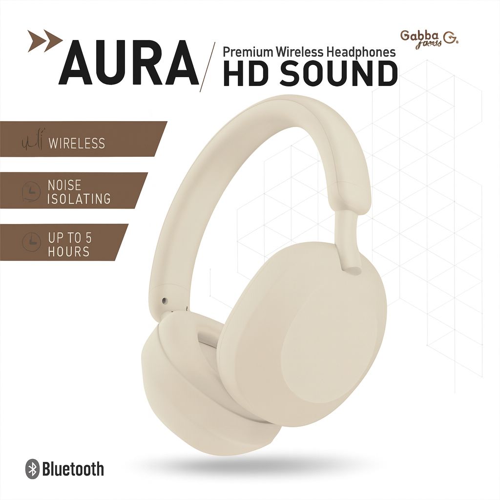 Gabba Goods Wireless Bluetooth Over-Ear Headphones – Deep Bass, 40mm Drivers, Built-in Mic, FM Radio, SD Card Playback, USB-C Fast Charging, 6H Playtime, Lightweight Comfort (IVORY) (LANE A5)