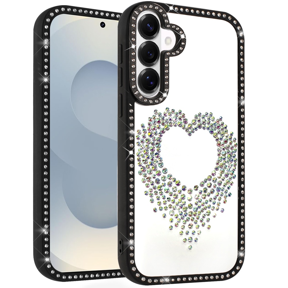 For Samsung s26 Beautiful ANGEL Hearts Glitter Shimmer Diamond Edged Hybrid Case - Black
