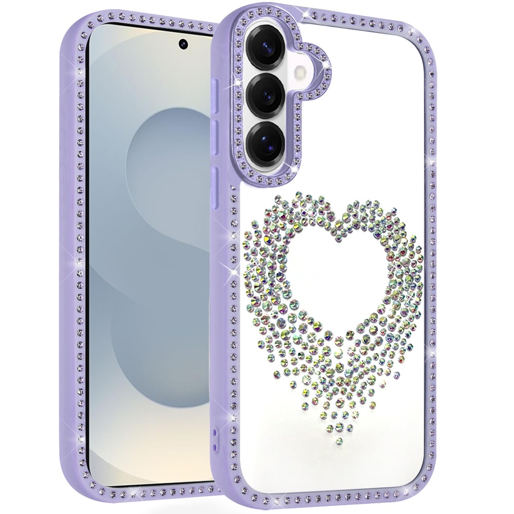 For Samsung s26 Beautiful ANGEL Hearts Glitter Shimmer Diamond Edged Hybrid Case - Purple