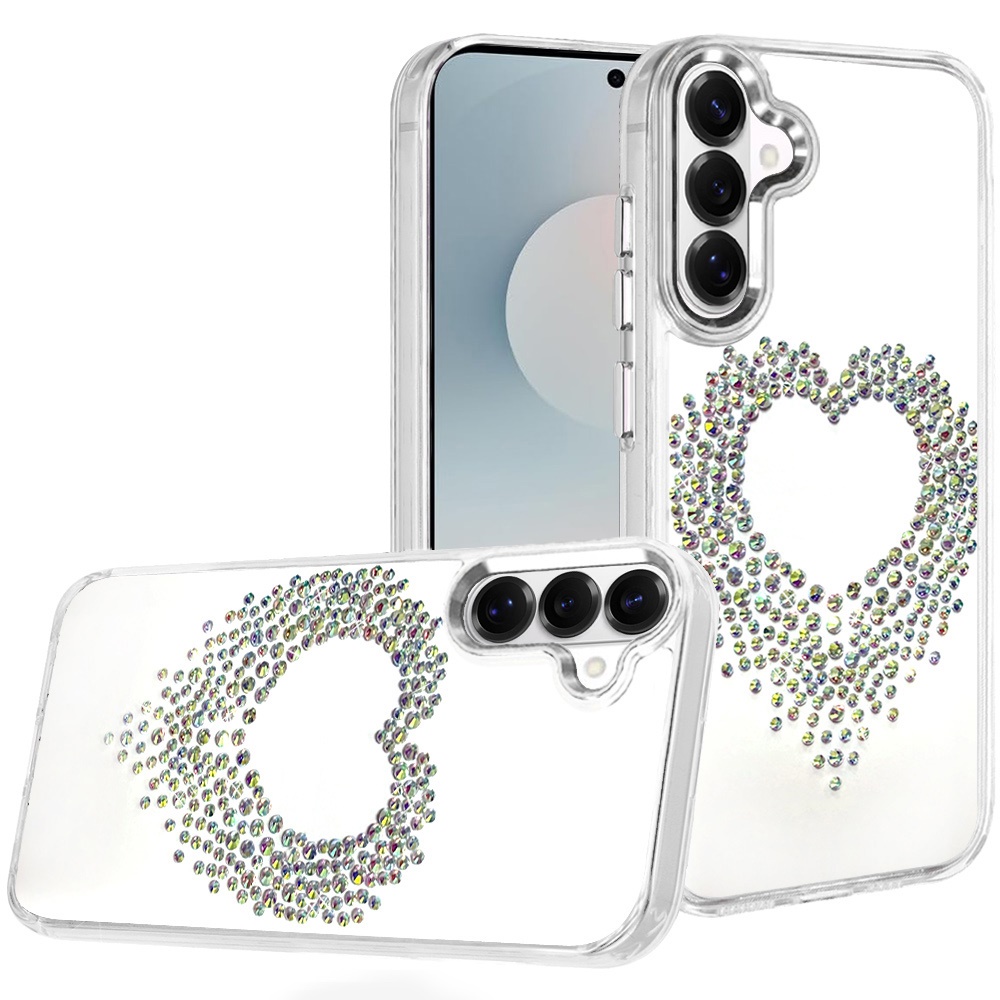 For Samsung s26 Angel Hearts Bling Shimmer Colorful Glitter Chrome Edged Hybrid Case - Silver