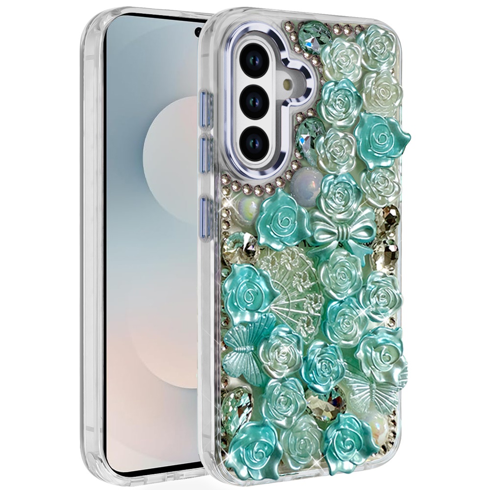 For Samsung s26 Muti-Color Floral Bling Stones Ornaments Case - Blue