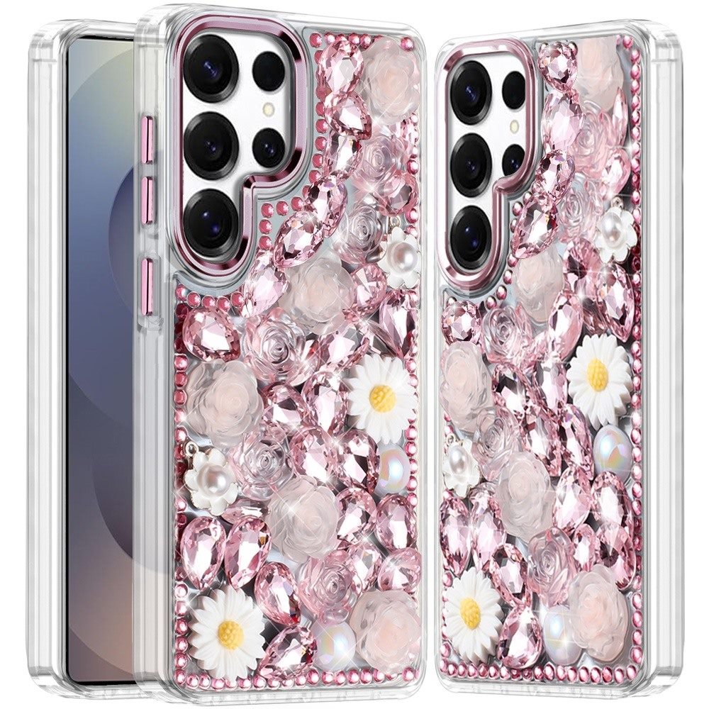 For Samsung s26 Ultra Spectacular Full Bling Stones Glitter HQ Hybrid Floral Series - Pink
