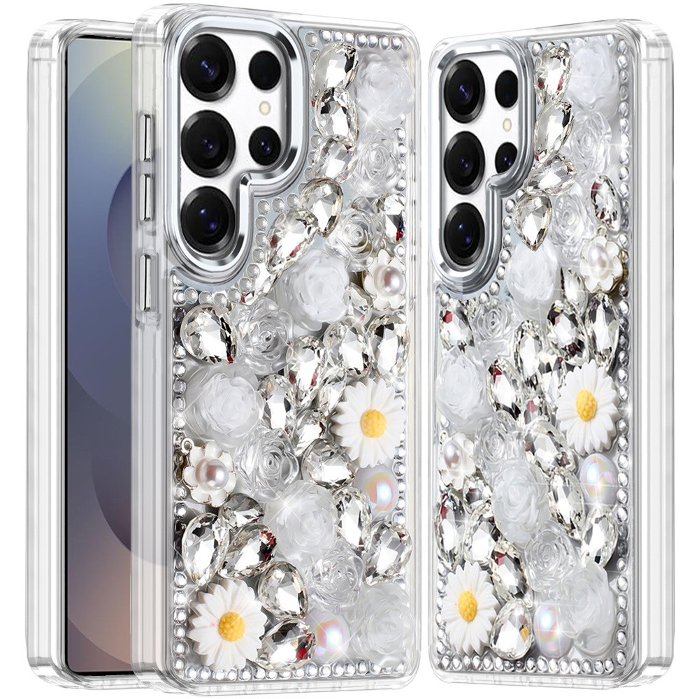 For Samsung s26 Ultra Spectacular Full Bling Stones Glitter HQ Hybrid Floral Series - White