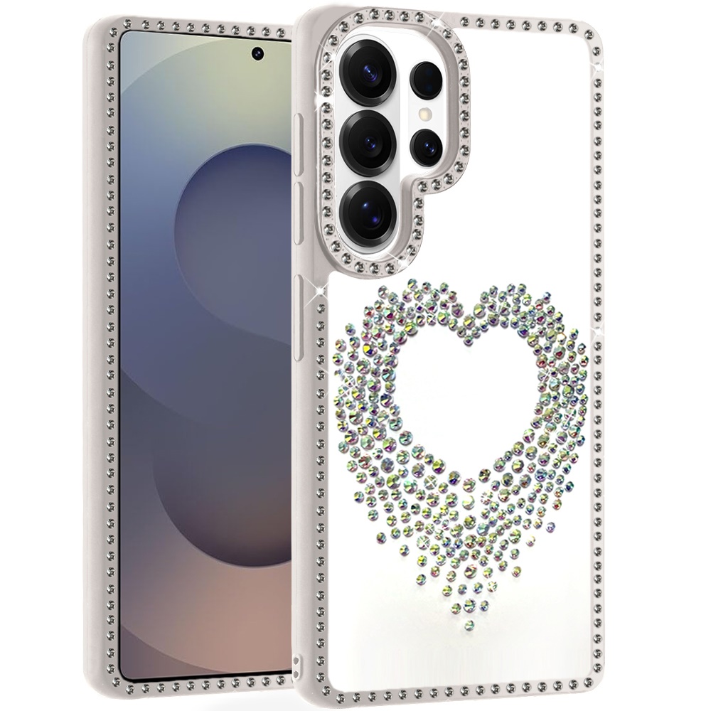 For Samsung s26 Ultra Beautiful ANGEL Hearts Glitter Shimmer Diamond Edged Hybrid Case - Beige