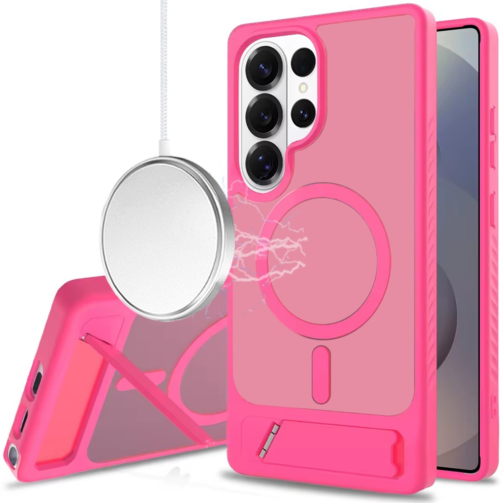 For Samsung s26 Ultra Matte Magnetic Hybrid with Metal Kickstand Case - Hot Pink