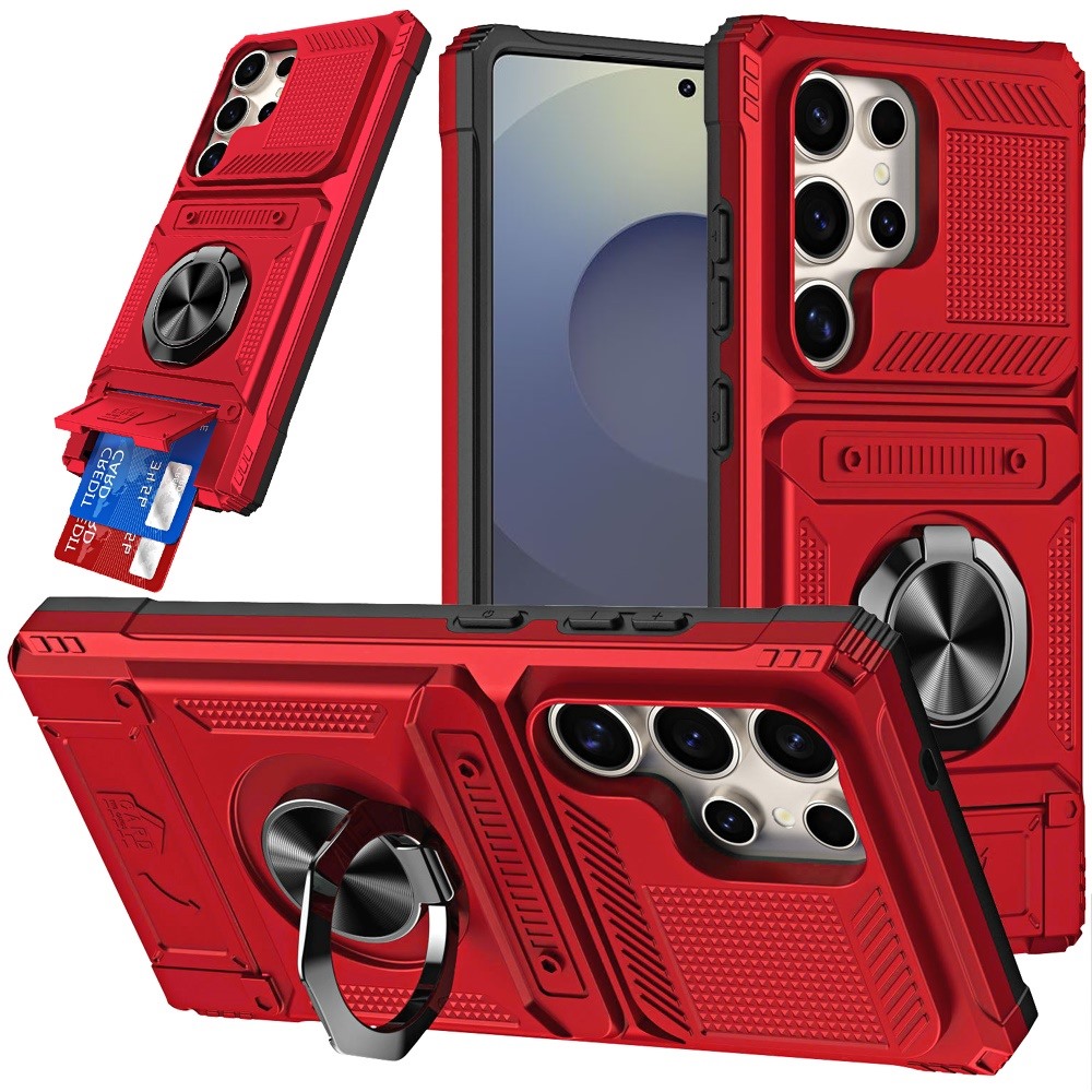 For Samsung s26 Ultra Multi-Functional 2X Card Slot Shockproof Metal Ring Hybrid Case - Red