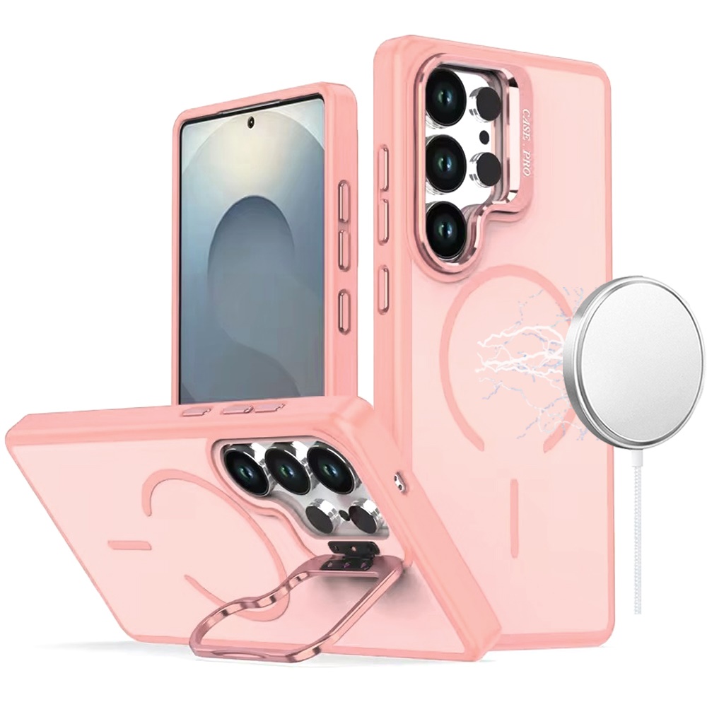 For Samsung s26 Ultra Magnetic Matte Camera Metallic Stand Hybrid Case - Pink