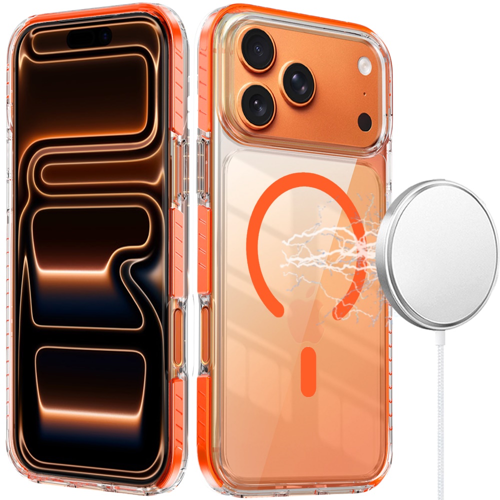 For iPhone 17 Pro Max Thick Transparent Colored Edged Magnetic Hybrid Case - Cosmic Orange