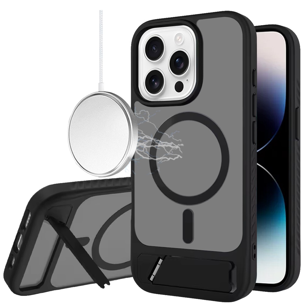 For iPhone 14 PRO MAX 6.7" Matte Magnetic Hybrid with Metal Kickstand Case - Black