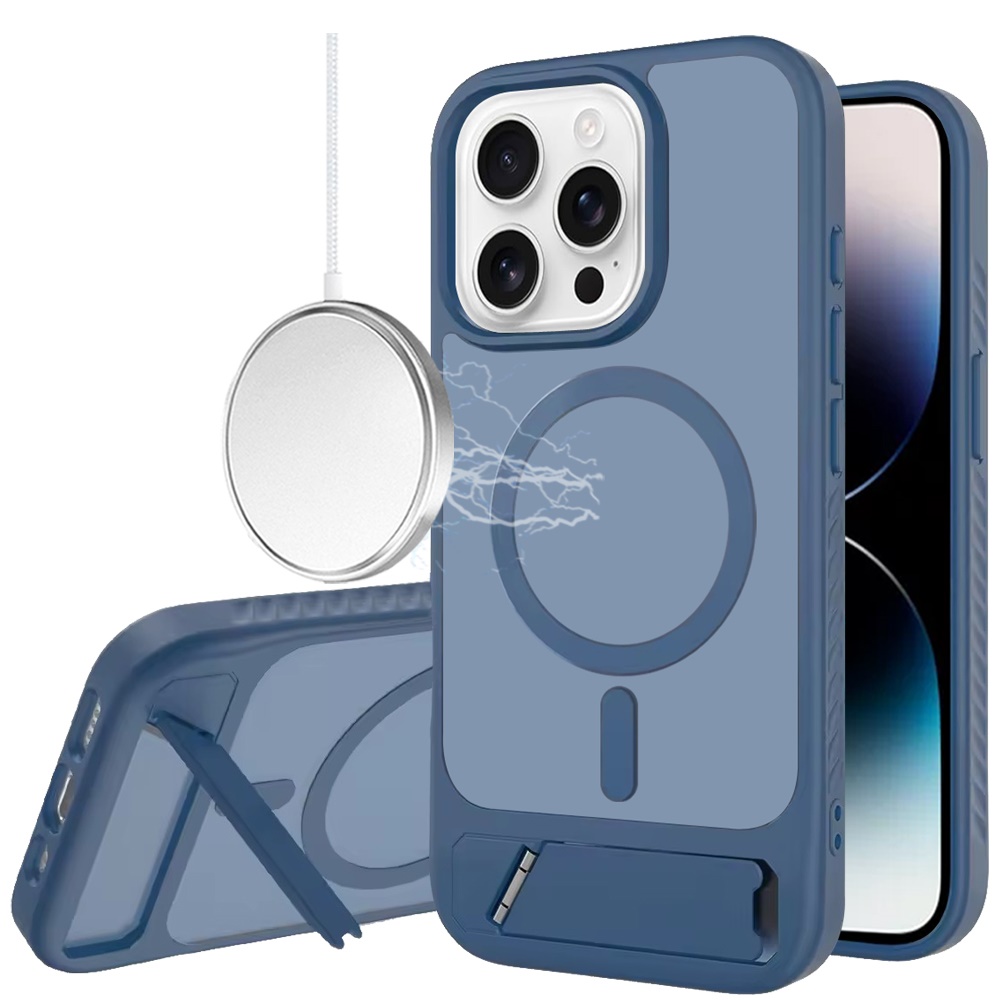 For iPhone 14 PRO MAX 6.7" Matte Magnetic Hybrid with Metal Kickstand Case - Royal blue