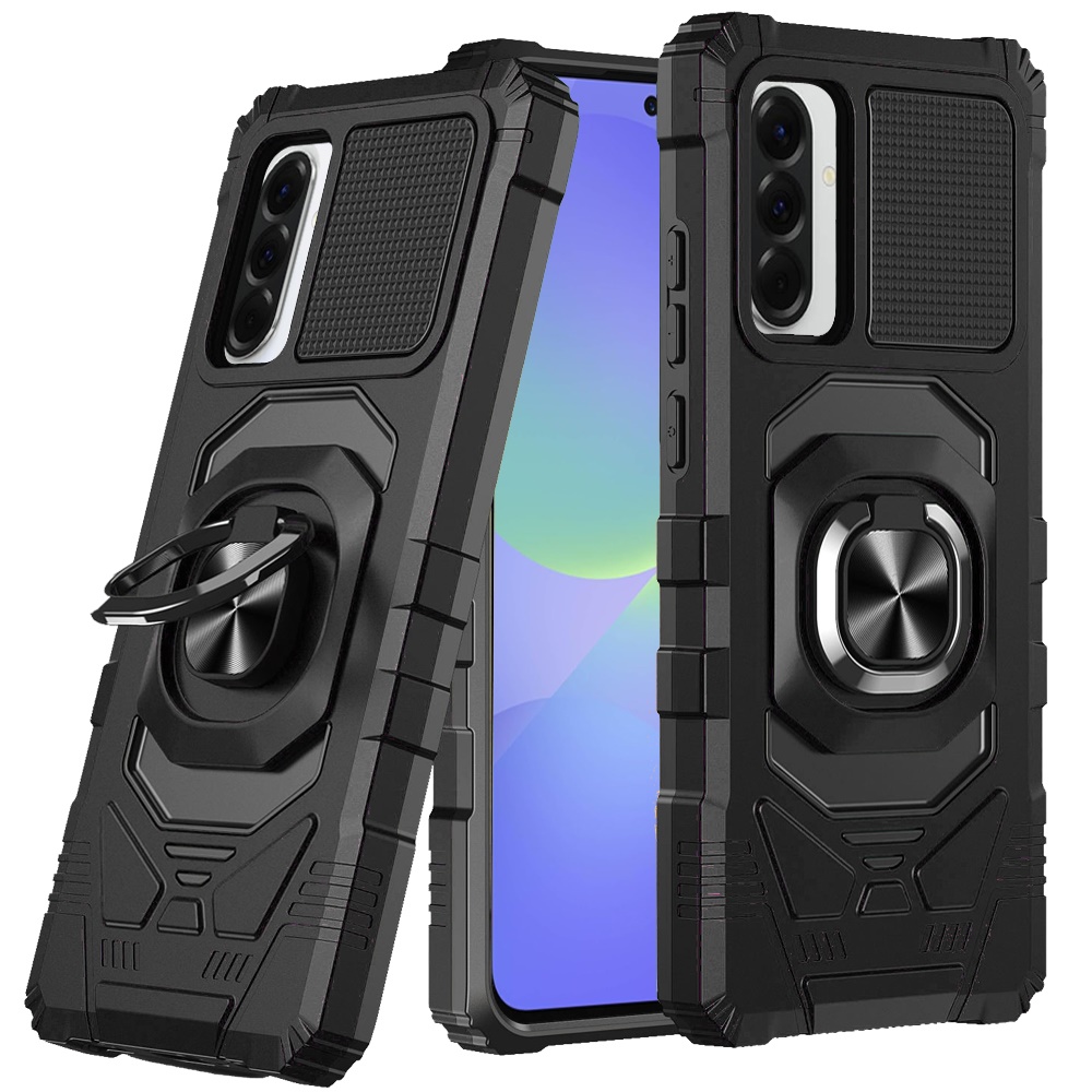 For Samsung Galaxy A37 Robotic Hybrid with Magnetic Ring Stand Case Cover - Black