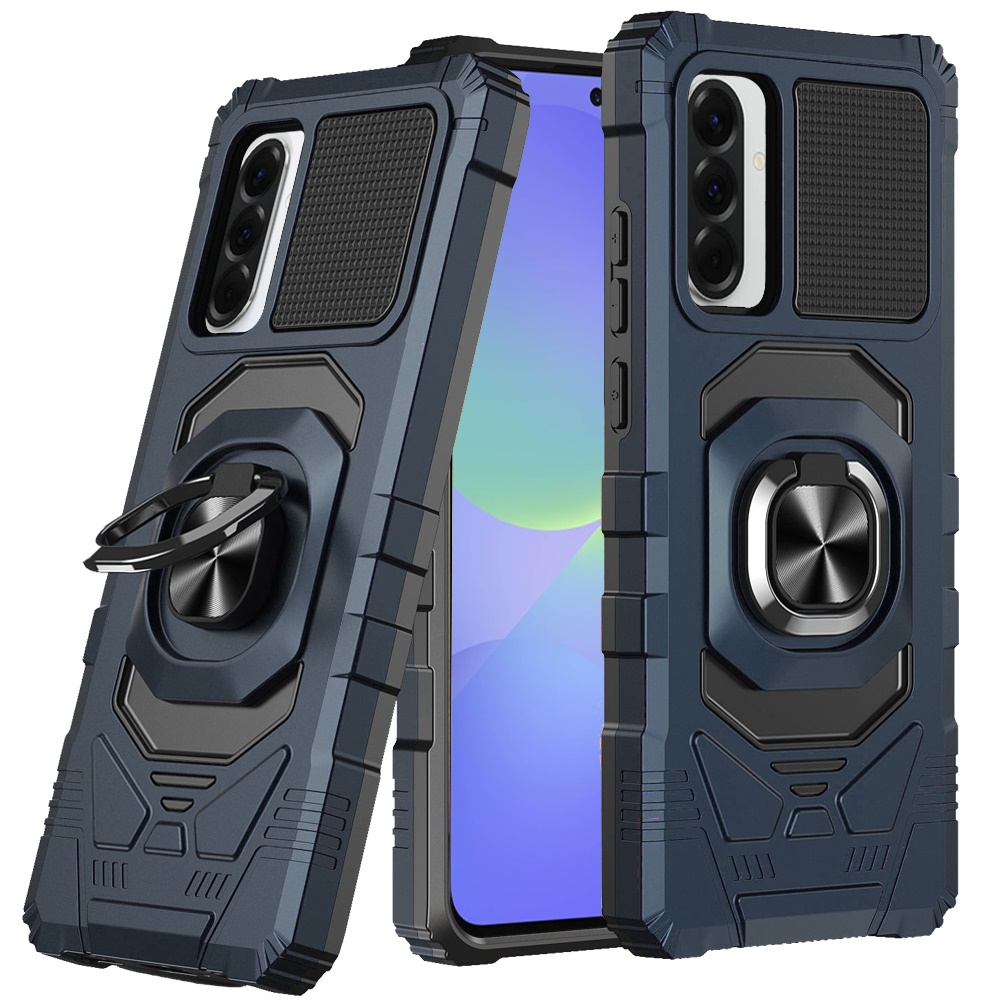 For Samsung Galaxy A37 Robotic Hybrid with Magnetic Ring Stand Case Cover - Dark Blue