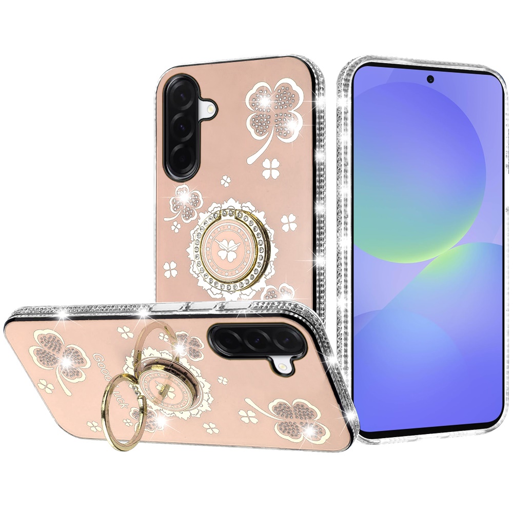 For Samsung Galaxy A37 Splendid Glitter with Diamonds All Around Edges Ring Stand Case Cover - Gold
