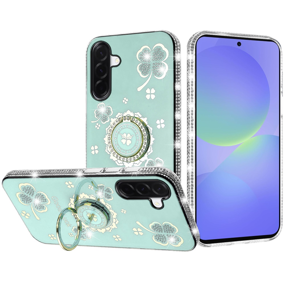 For Samsung Galaxy A37 Splendid Glitter with Diamonds All Around Edges Ring Stand Case Cover - Teal