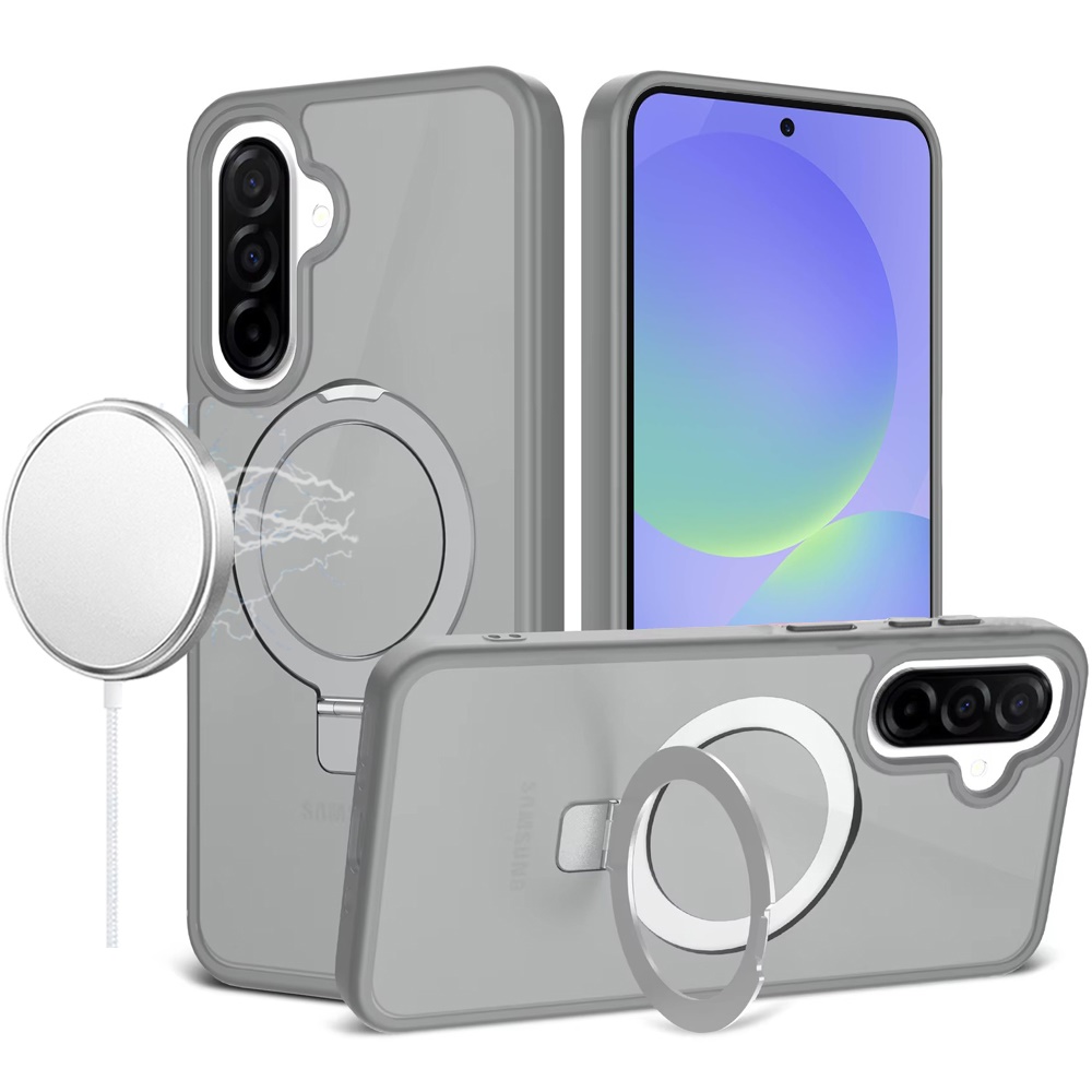 For Samsung Galaxy A37 Magnetic Matching Ring Stand Full Rotation Matte Hybrid - Grey