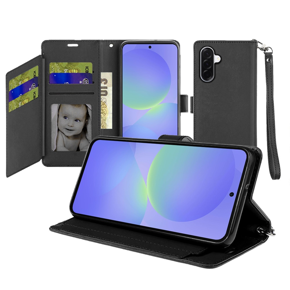 For Samsung Galaxy A37 Wallet ID Card Holder Case Cover - Black