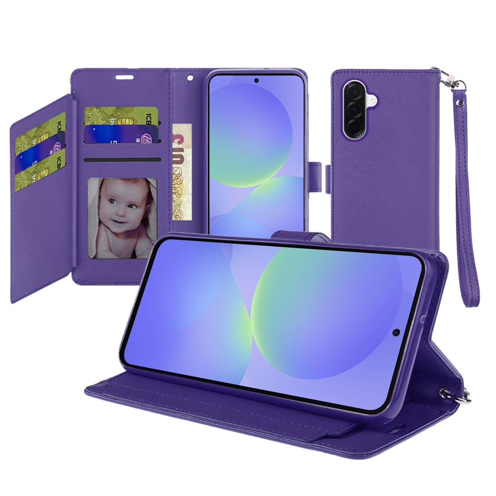 For Samsung Galaxy A37 Wallet ID Card Holder Case Cover - Dark Purple