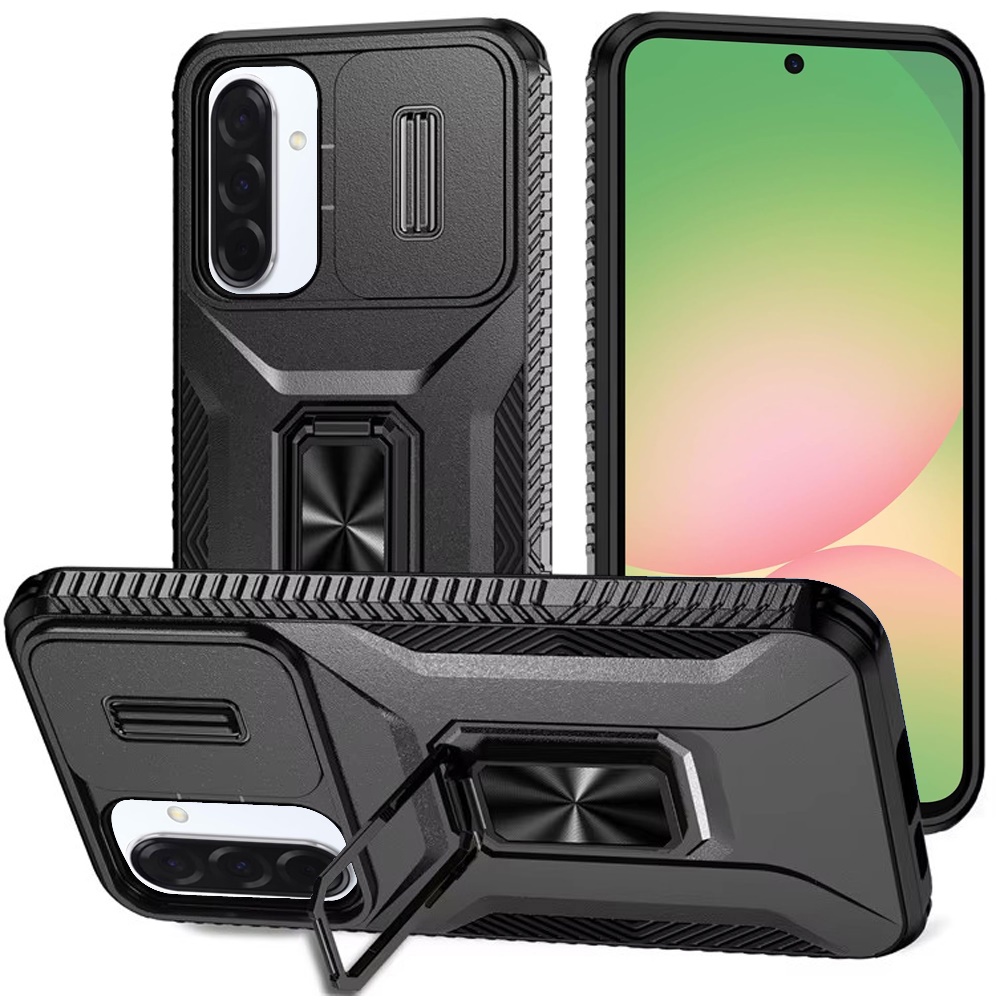 For Samsung Galaxy A57 Complete Magnetic Metal Ring Stand Camera Protection Hybrid - Black