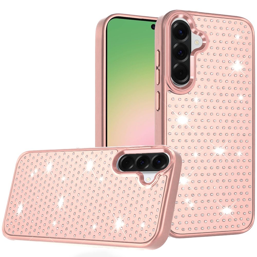 For Samsung Galaxy A57 Beautiful Diamond Metallic Design Metal Chrome Edged Hybrid - Rose Gold