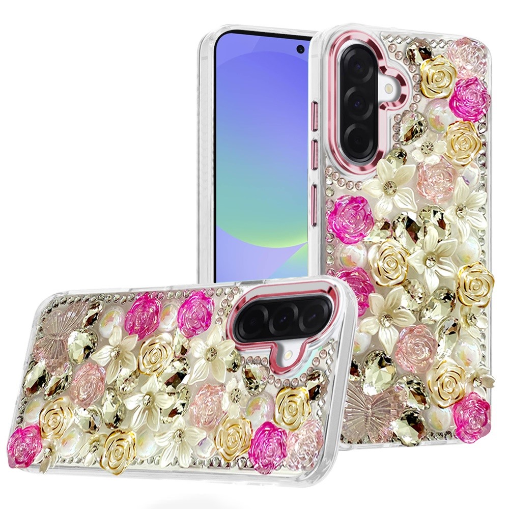 For Samsung Galaxy A37 Muti-Color Rose Bling Stones Ornaments Case - Pink