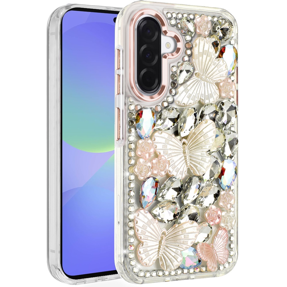 For Samsung Galaxy A37 Lavished Floral Butterfly Bling Stones Hybrid Case - Rose Gold