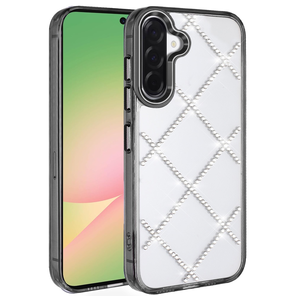 For Samsung Galaxy A57 Gem Glitter Diamond Transparent Hard Colorful TPU Hybrid Case - Black