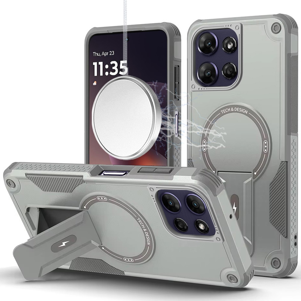 For Motorola Moto G Power 5G 2025 Sturdy Bracket Kickstand Magnetic Hybrid - Grey