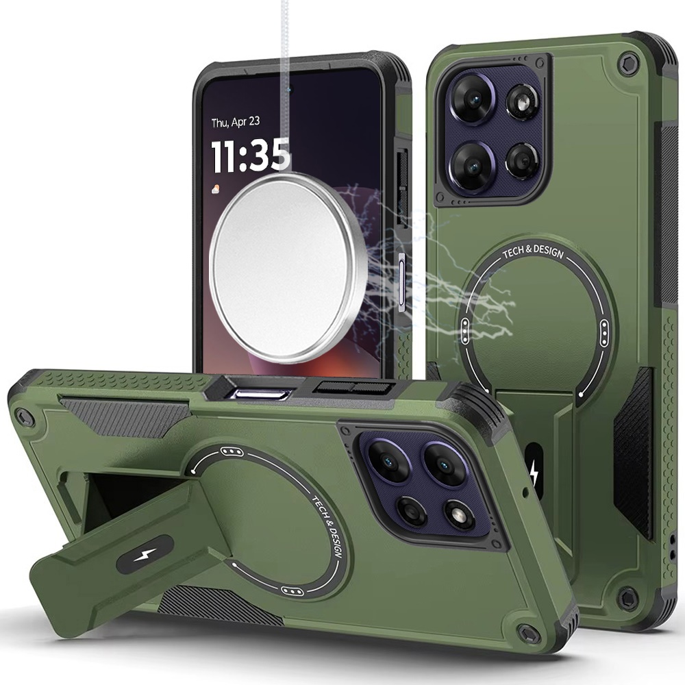 For Motorola Moto G Power 5G 2025 Sturdy Bracket Kickstand Magnetic Hybrid - Midnight Green