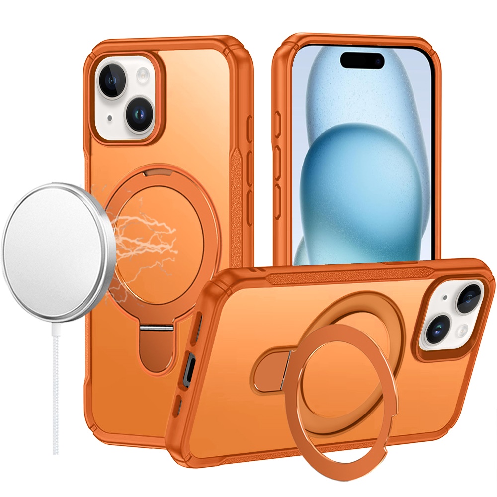 For iPhone 15 Matte Finish Simplified Magnetic Ring With Stand Hybrid Case - Cosmic Orange