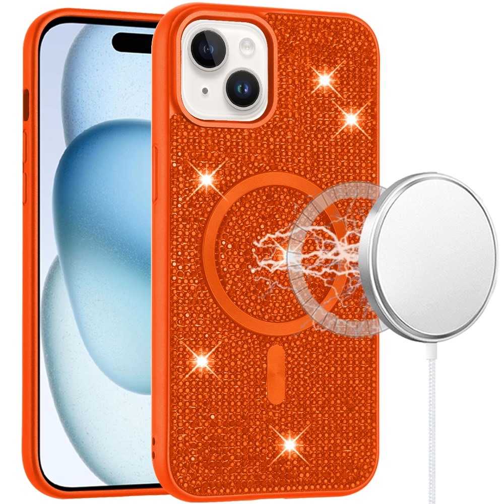 For iPhone 15 Diamond [Magnetic Circle] with CD Pattern Hybrid - Cosmic Orange