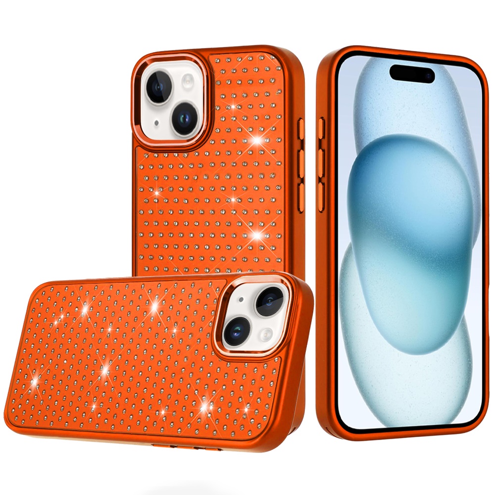 For iPhone 15 Beautiful Diamond Metallic Design Metal Chrome Edged Hybrid - Cosmic Orange