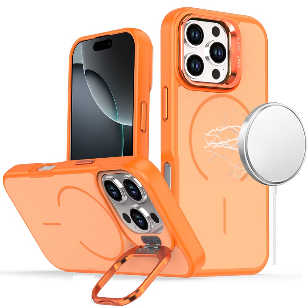For iPhone 16 Pro Max 6.9 inch Premium Matte Magnetic Metal Camera Stand Hybrid Case - Cosmic Orange