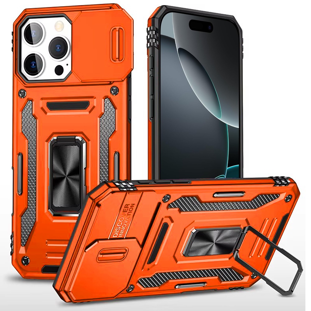 For iPhone 16 Pro Max 6.9 inch Utter Tough Metal Ring Movable Camera Window Hybrid Case Cover - Cosmic Orange