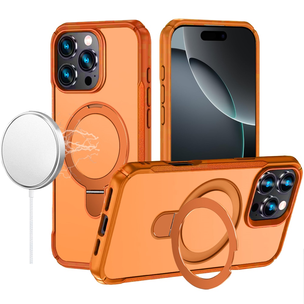 For iPhone 16 Pro Max 6.9 inch Matte Finish Simplified Magnetic Ring With Stand Hybrid Case - Cosmic Orange