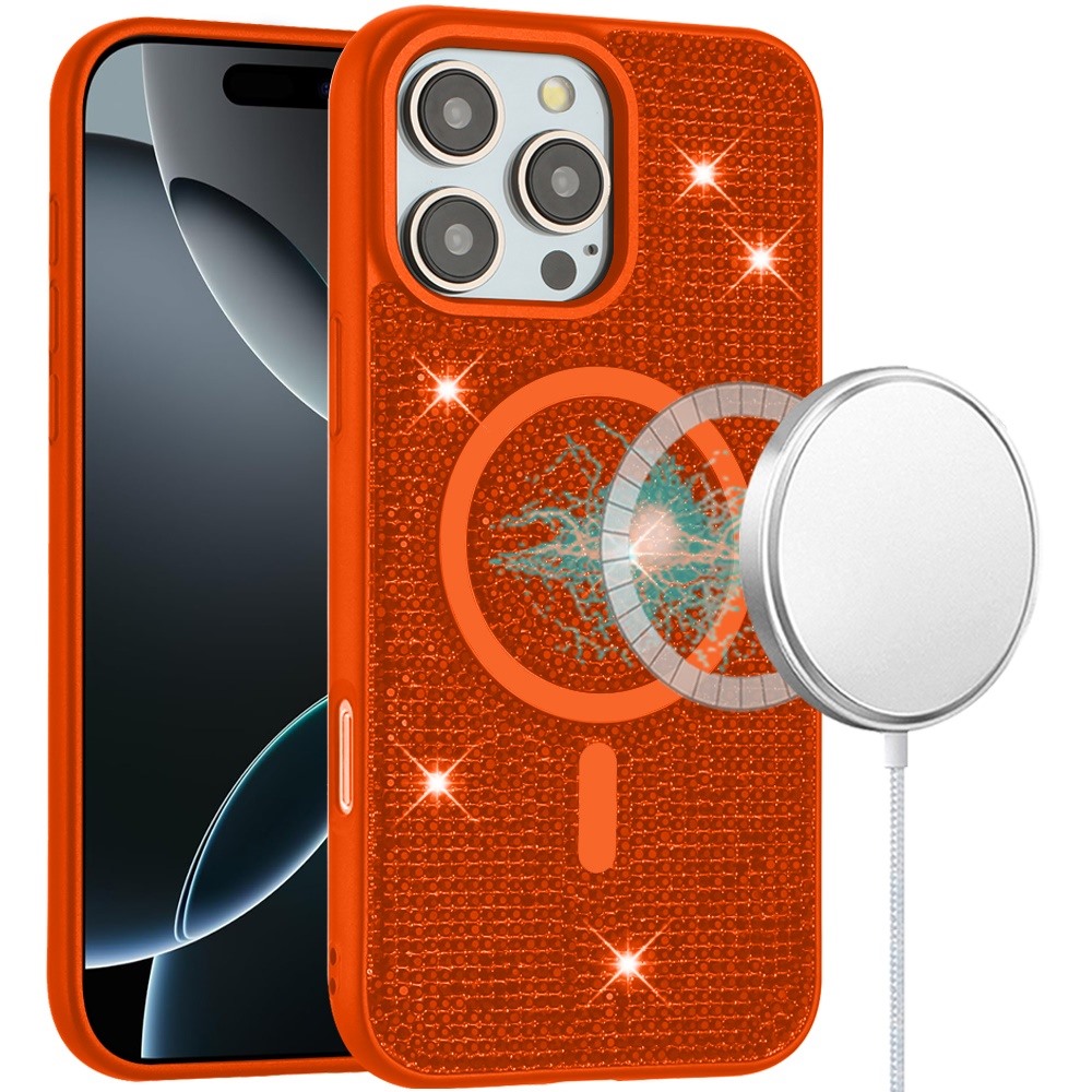 For iPhone 16 Pro Max 6.9 inch Diamond [Magnetic Circle] with CD Pattern Hybrid - Cosmic Orange