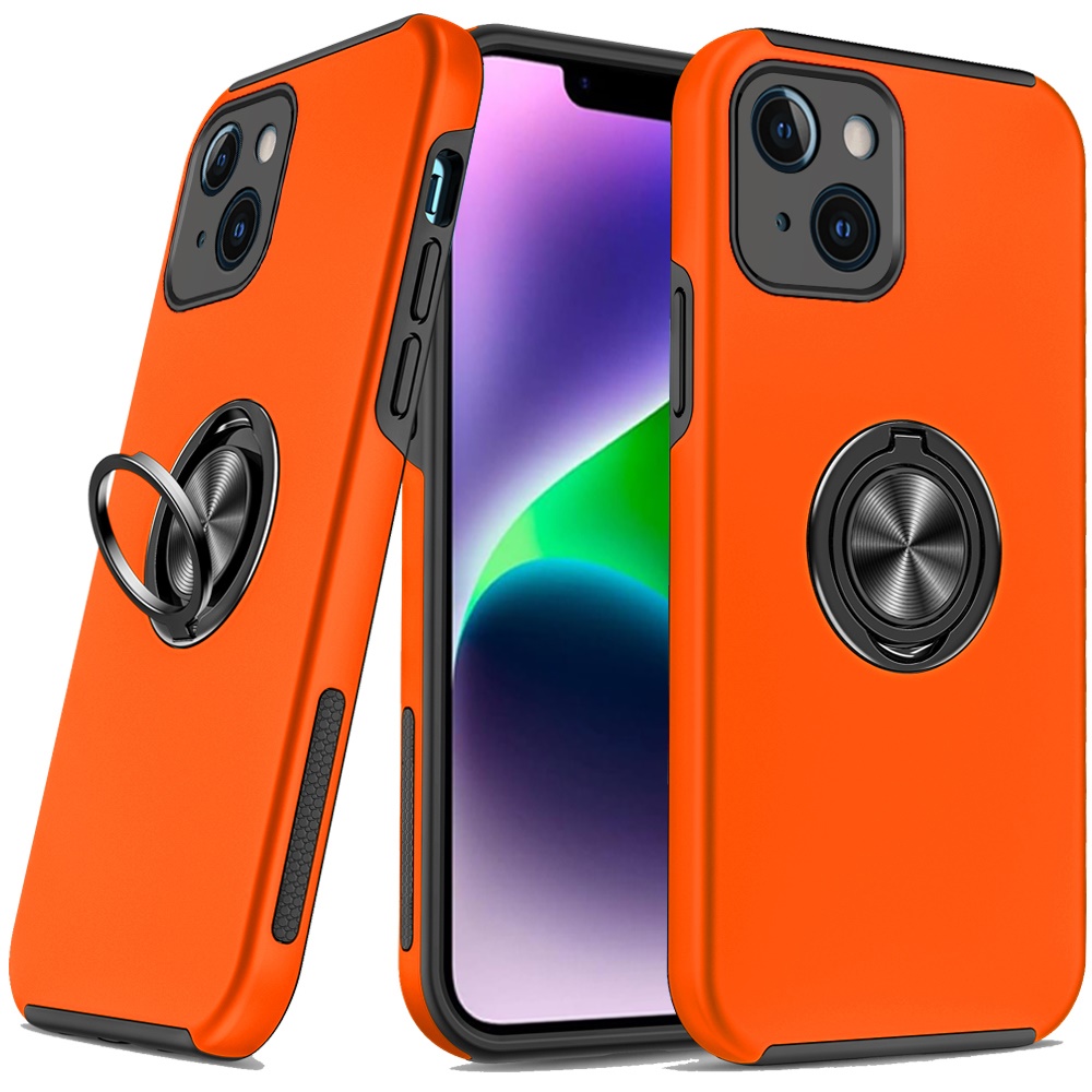 For iPhone 13/14 CHIEF Oil Painted Magnetic Ring Stand Hybrid Case Cover - Cosmic Orange