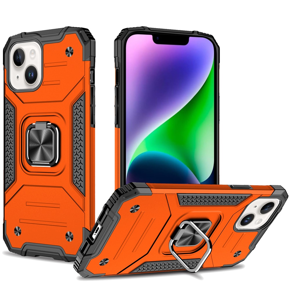 For iPhone 13/14 Robust Magnetic Kickstand Hybrid Case Cover - Cosmic Orange