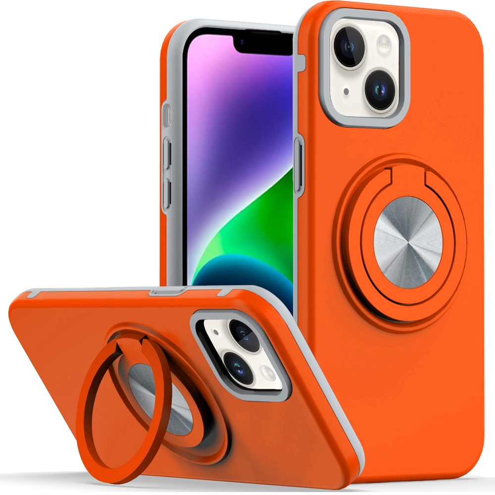 For iPhone 13/14 Metal CD Pattern Matte Finished Hybrid with Rotational Ring [Car Mount Friendly] Case - Cosmic Orange