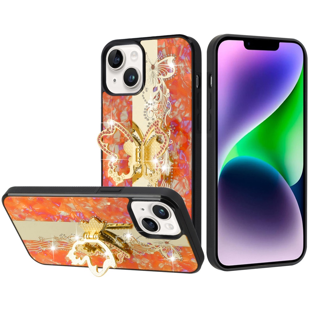 For iPhone 13/14 SPLENDID Diamond Glitter Ornaments Engraving Case Cover - Enchanted Butterfly Cosmic Orange