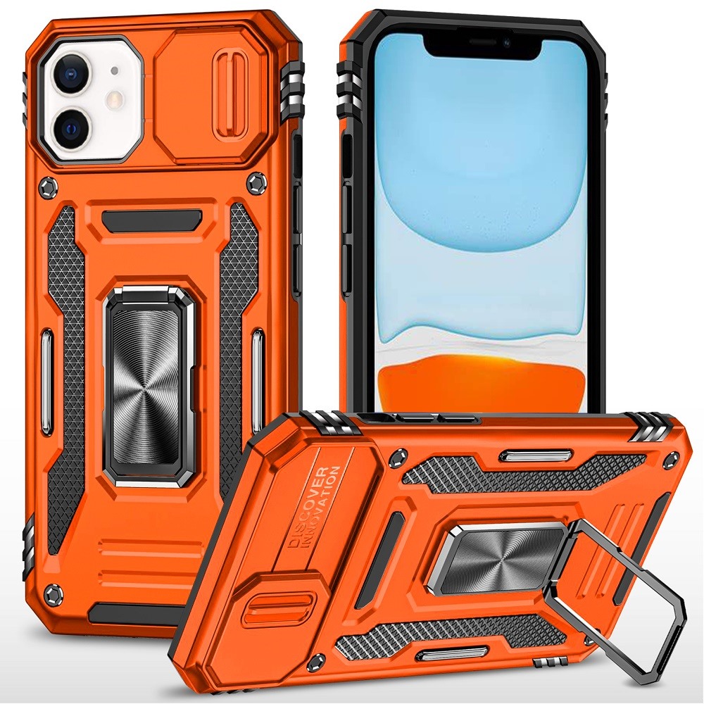 For iPhone 11 (XI6.1) Utter Tough Metal Ring Movable Camera Window Hybrid Case Cover - Cosmic Orange