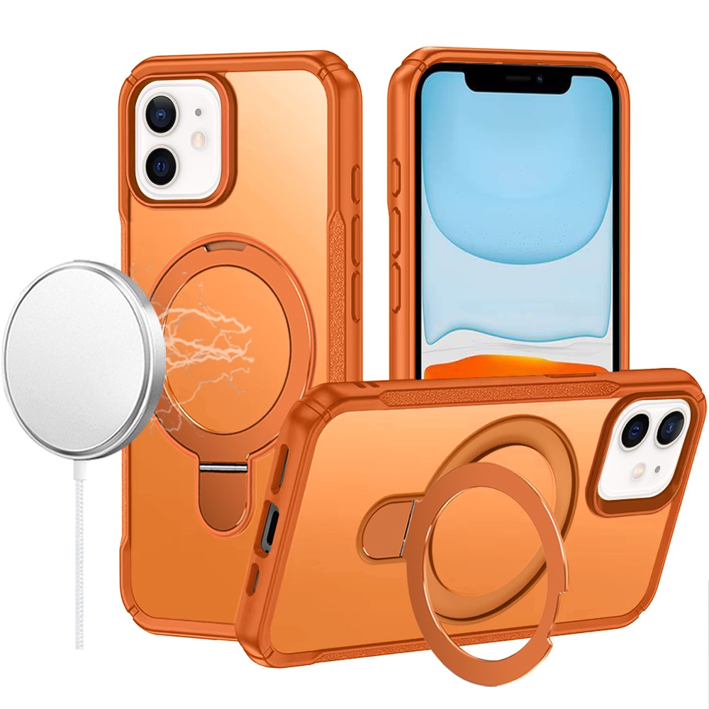 For iPhone 11 (XI6.1) Matte Finish Simplified Magnetic Ring With Stand Hybrid Case - Cosmic Orange