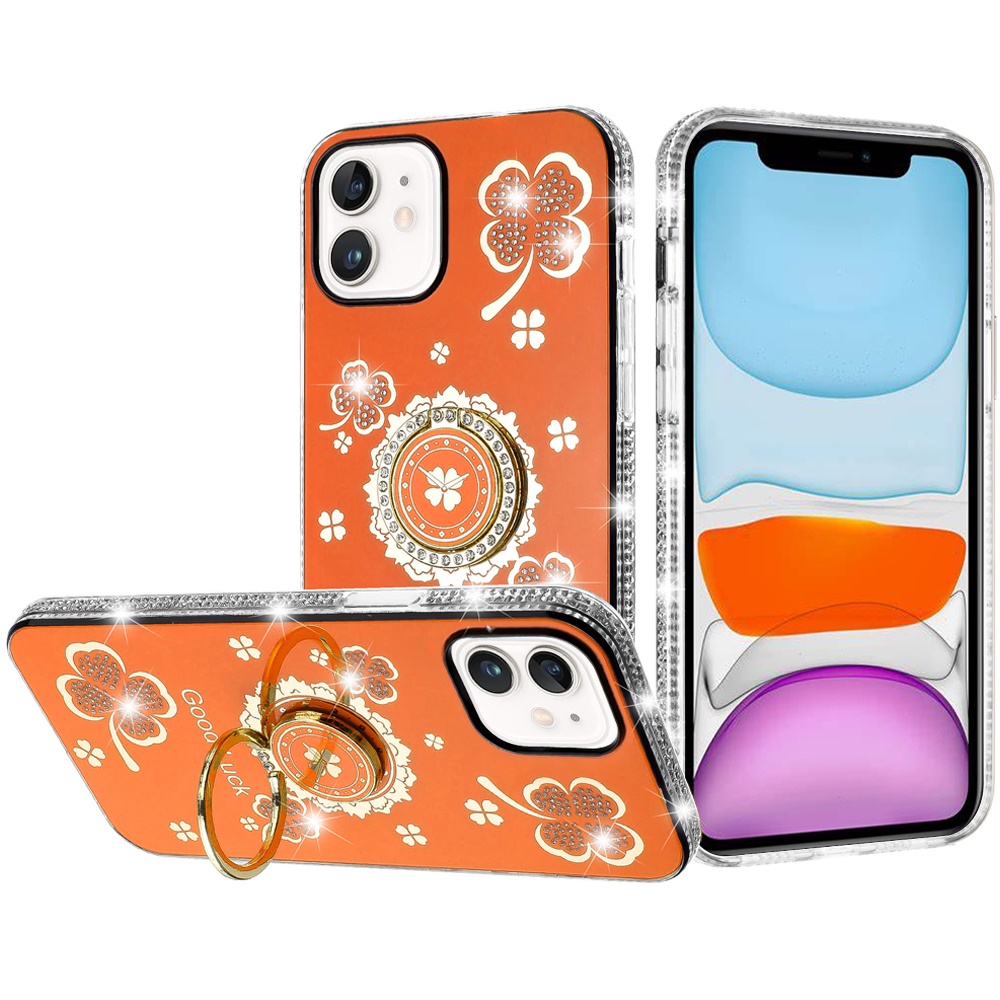 For iPhone 11 (XI6.1) Splendid Glitter with Diamonds All Around Edges Ring Stand Case Cover - Cosmic Orange