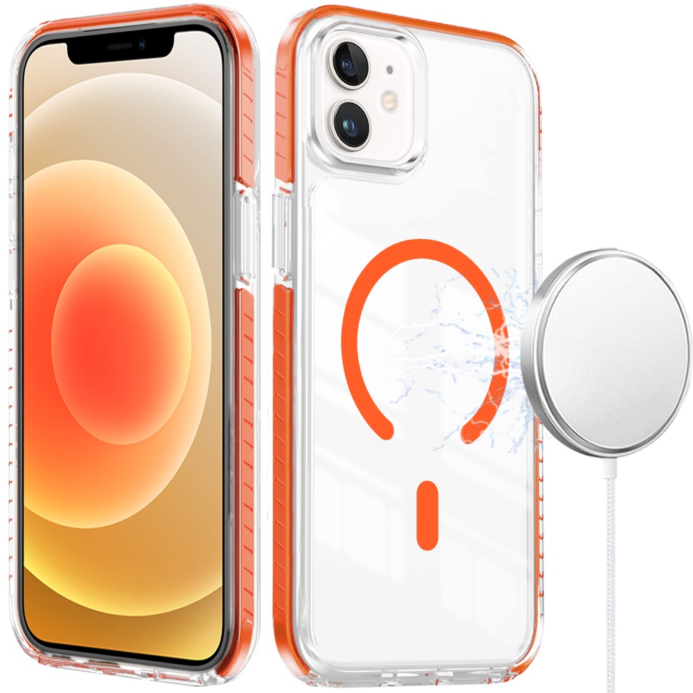 For iPhone 12 & iPhone 12 Pro Thick Transparent Colored Edged Magnetic Hybrid Case - Cosmic Orange