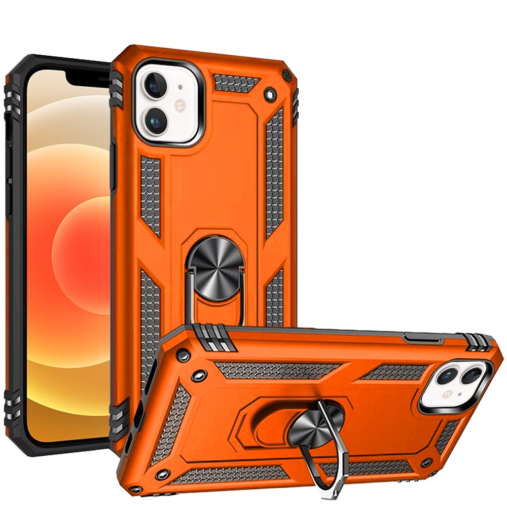 For iPhone 12 & iPhone 12 Pro Ring Magnetic Kickstand Hybrid Case Cover - Cosmic Orange