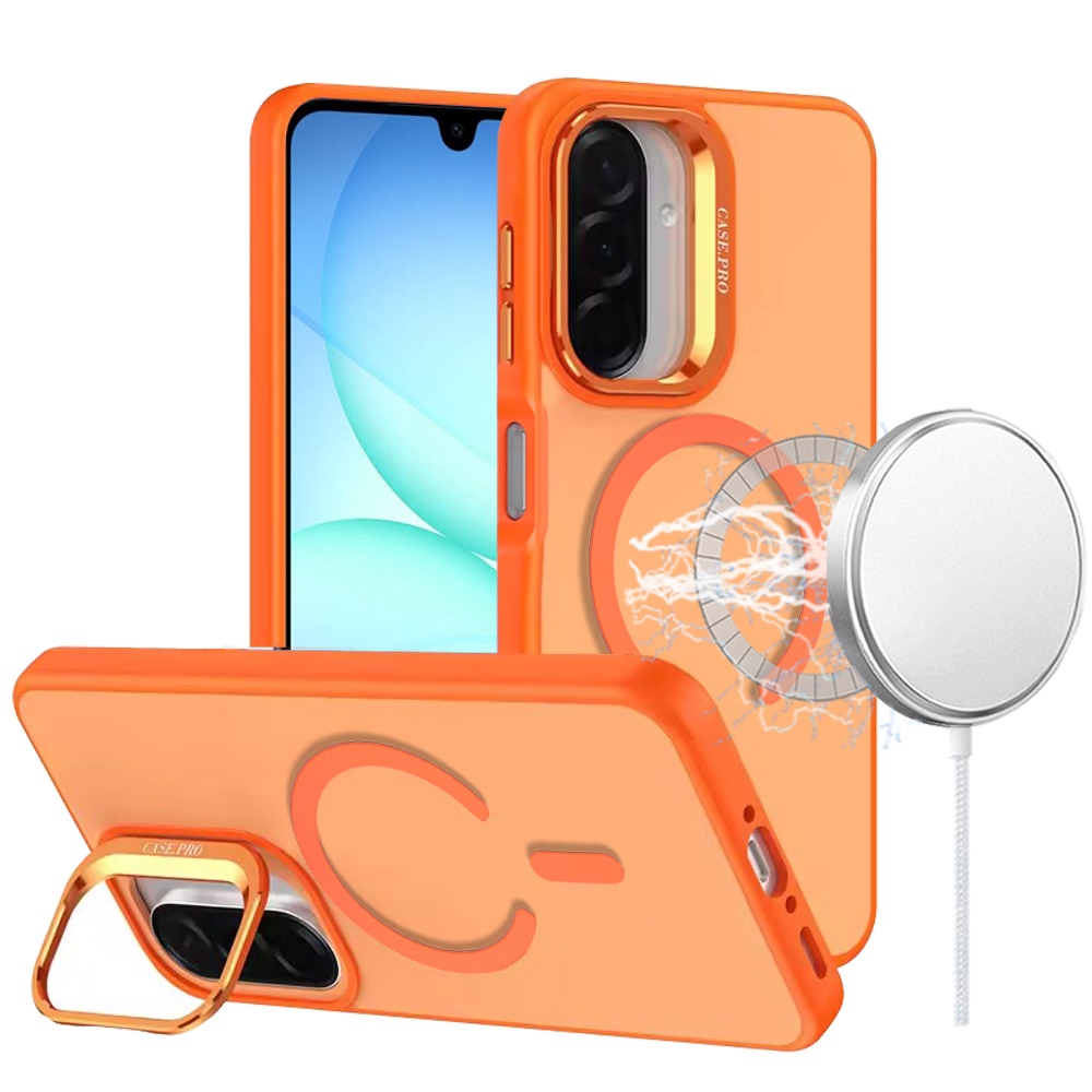 For Samsung A17 5G Magnetic Matte Camera Metallic Stand Hybrid Case - Cosmic Orange