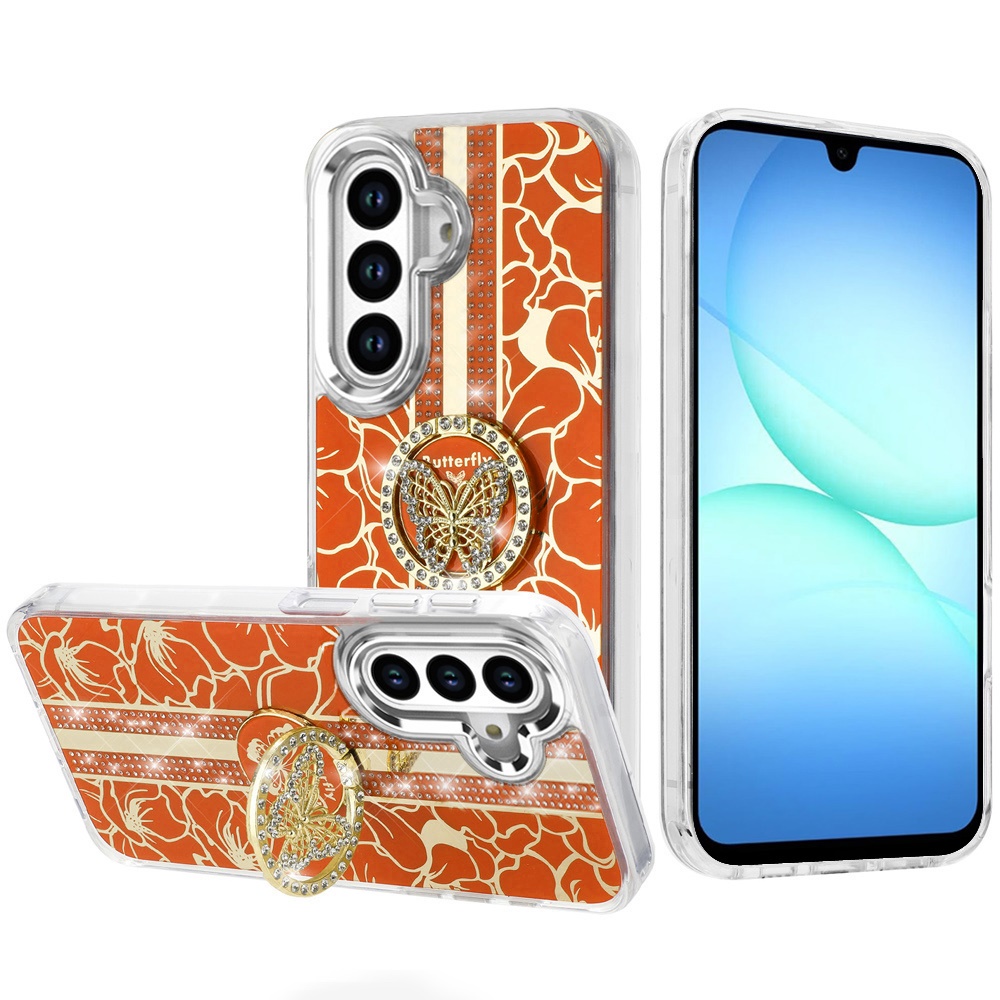 For Samsung A17 5G Splendid Floral Designs with Metal Camera and Buttons with Butterfly Ring Stand Hybrid Case - Cosmic Orange