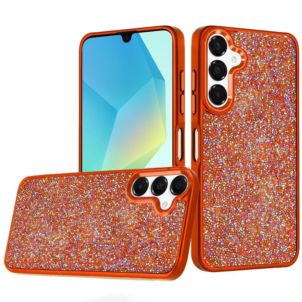 For Samsung A16 5G Crystal Glass Diamond with Metallic Buttons and Edges Hybrid Case - Cosmic Orange