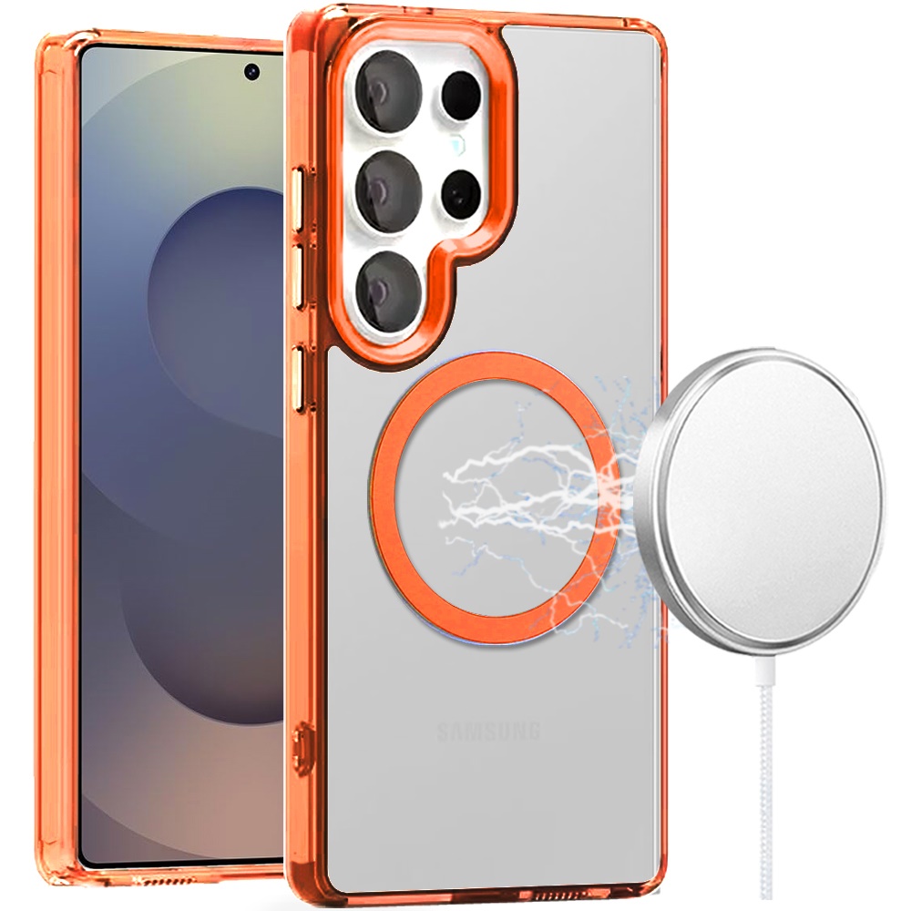 For Samsung s25 Ultra Magnetic Circle Ring Transparent Premium Acrylic with Metal Buttons & Camera Raised Lip - Cosmic Orange