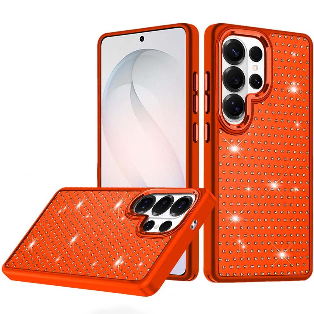 For Samsung s26 Ultra Beautiful Diamond Metallic Design Metal Chrome Edged Hybrid - Cosmic Orange